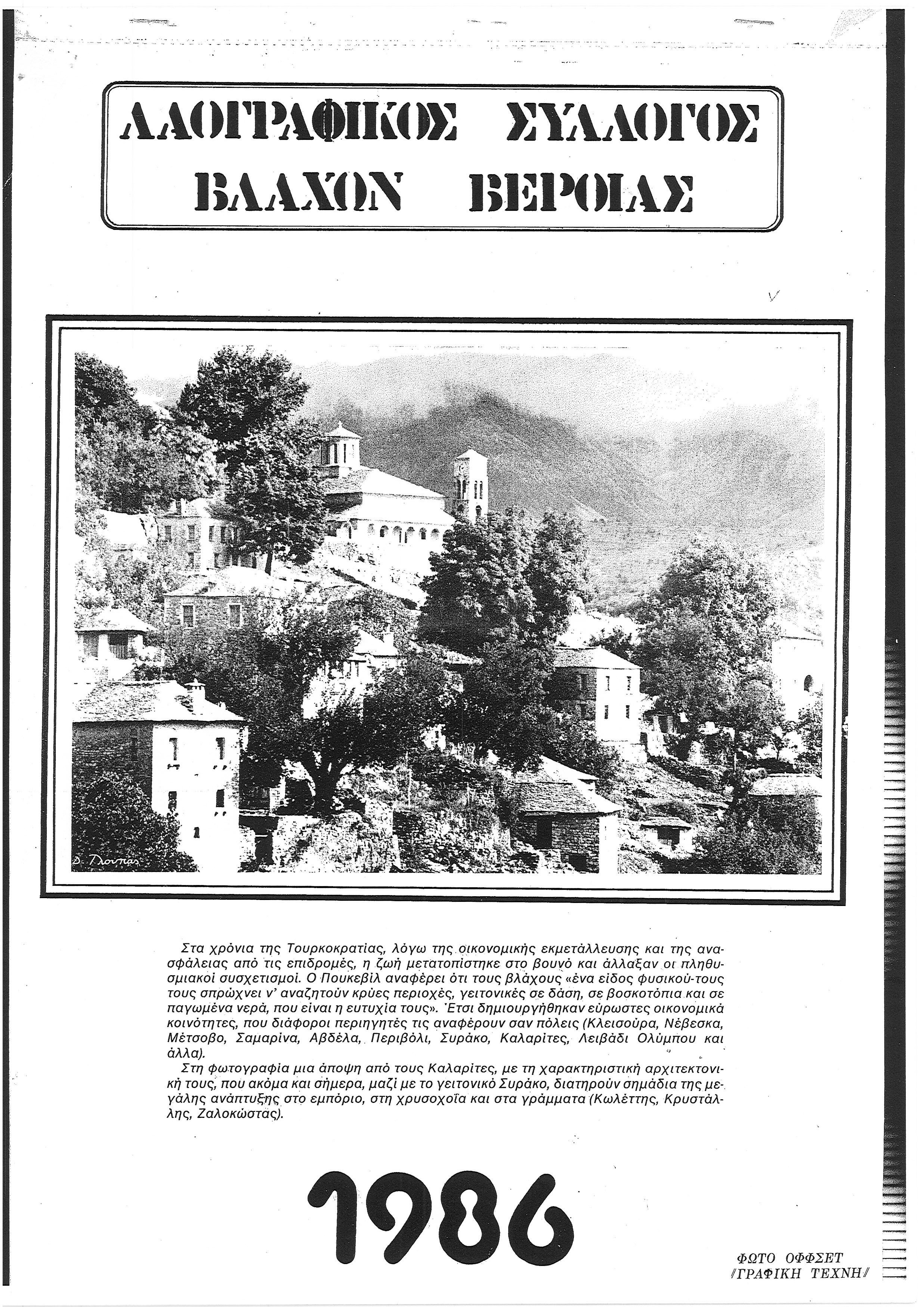 Ο Σύλλογος από την ίδρυσή του εκδίδει ανελλιπώς, κάθε χρόνο, Ημερολόγιο , που αποτελεί ιστορική μαρτυρία πτυχών της βλάχικης ζωής, και δεν είναι λίγοι αυτοί που κρατούν στο αρχείο τους ως ντοκουμέντα όλα τα Ημερολόγια.